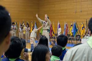 | 連盟歌、団歌の詠唱の後は、スカウトサイン。 |