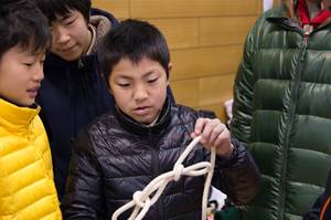 | 団での集まりは、新年集会以来となるので、ボーイスカウトがカブスカウトにロープワークを教える場面などもありました。 |