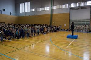 | 楽しく遊んだ後は、閉会のセレモニーを行い、国旗後納して、新年集会を終了しました。 |